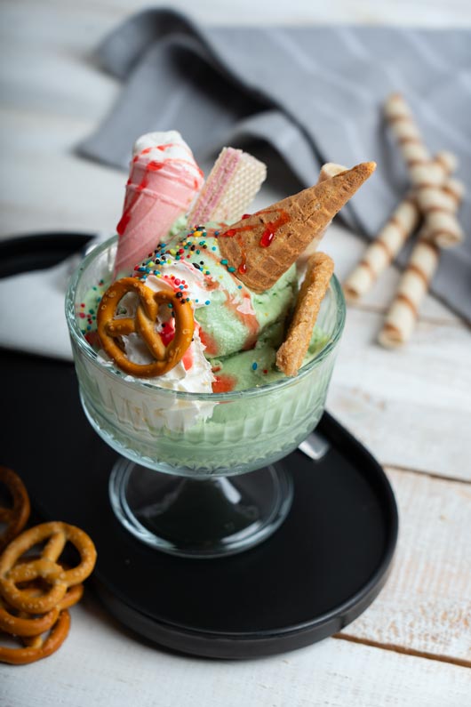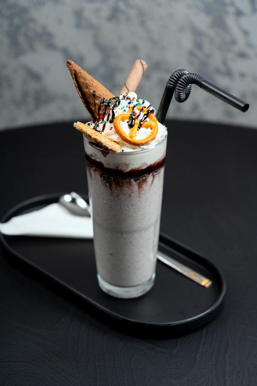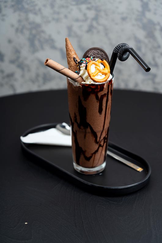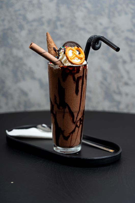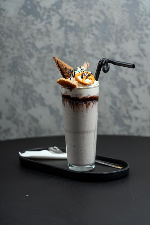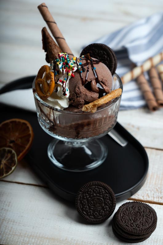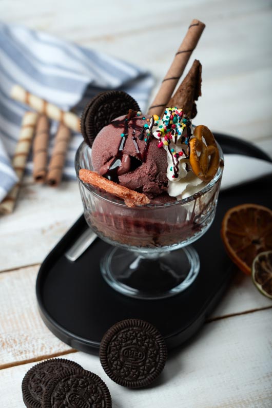 بیسکوئیت OREO ، شیر ، بستنی دارک چاکلت ، سیروپ کارامل