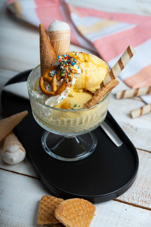 بیسکوئیت لوتوس ، کرم لوتوس ، شیر ، بستنی وانیل