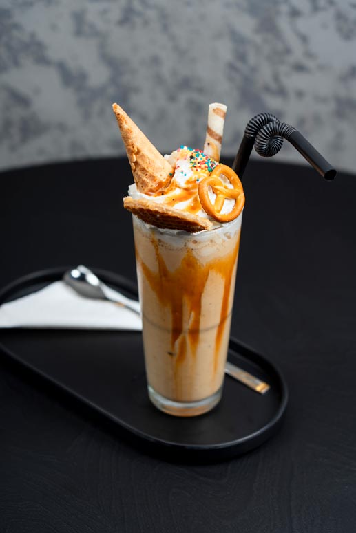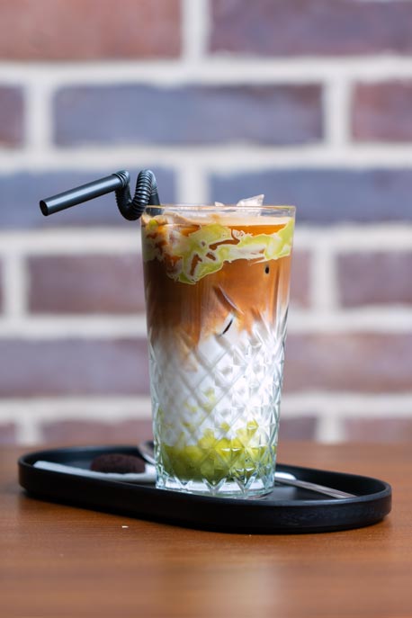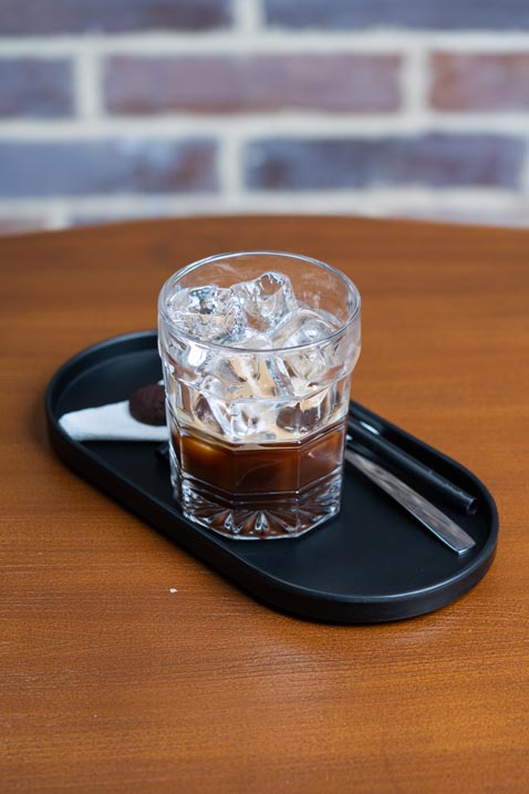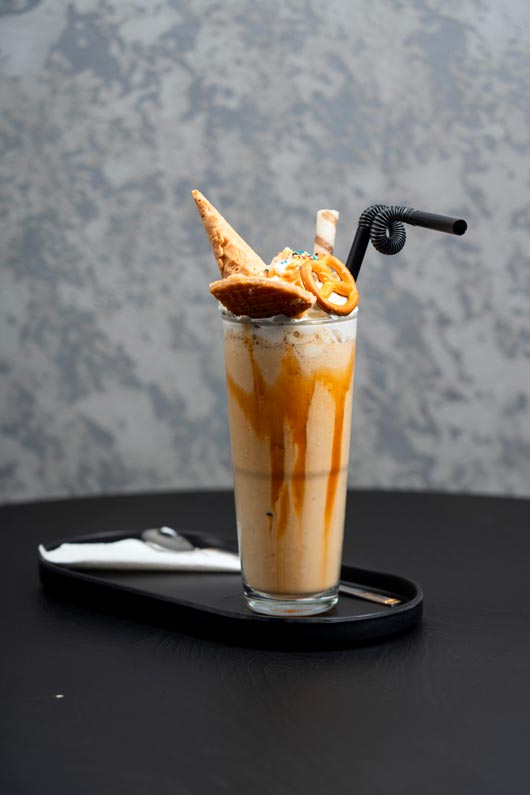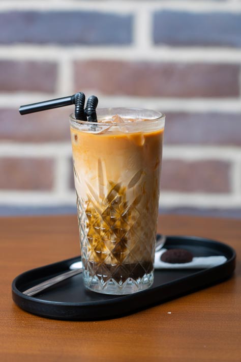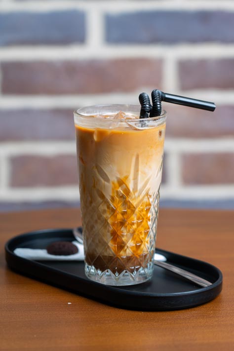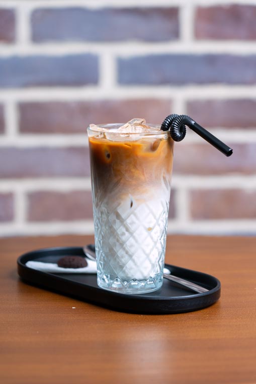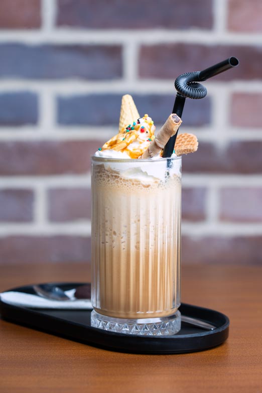 اسپرسو، شیر، یخ، خامه، سیروپ آیریش